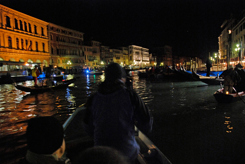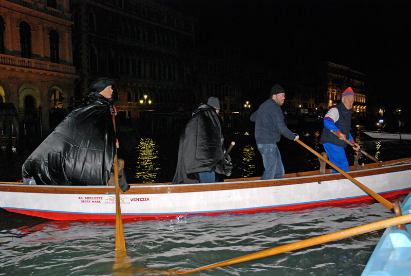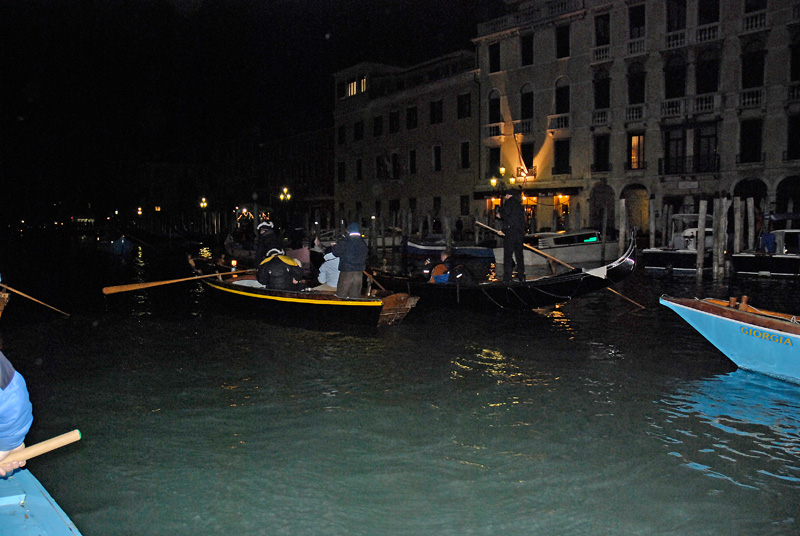 Ieri notte si è svolta la cerimonia di chiusura del Carnevale 2011. Diverse imbarcazioni, rigorosamente a remi, hanno sfilato lungo il Canal Grande, scivolando silenziose tra i palazzi illuminati da centinaia di candele. Migliaia di turisti incuriositi hanno assistito dalle rive al passaggio delle barche, rispettando il silenzio.