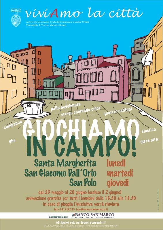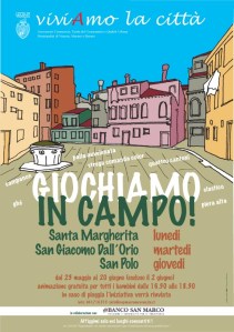 “Giochiamo in campo” è un’iniziativa del Comune di Venezia per offrire ai bambini l’opportunità di giocare nei loro luoghi quotidiani e nel contempo scoprire e imparare a conoscere la loro città.