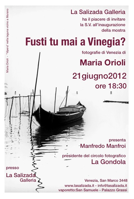 Ancora qualche giorno di tempo per ammirare l’esposizione fotografica “Fusti tu mai a Vinegia?“. Organizzata dal Circolo fotografico La Gondola, la mostra raccoglie una serie di scatti di Maria Orioli di grande interesse.