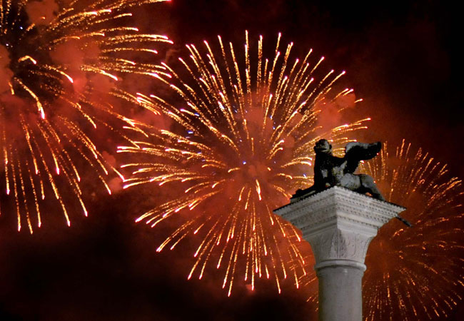 A partire dal tardo pomeriggio del sabato, centinaia di barche addobbate e illuminate trovano posto in Bacino San Marco e in Canale della Giudecca dove si consuma una cena a base di prodotti tipici in attesa delle 23,30, quando avrà inizio lo spettacolo pirotecnico. Quest’anno, per via della crisi, lo spettacolo durerà un po’ meno rispetto agli anni passati, ma la magia dei fuochi riflessi sull’acqua rimane immutata.