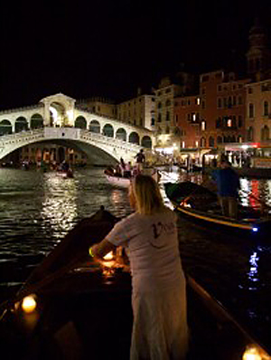 Il ritrovo è previsto in Campo San Vio alle ore 20.30, dopodiché si vogherà lungo il Canal Grande, fermandosi in alcuni punti dove è prevista la serenata e per mangiare in barca cullati dalle onde.