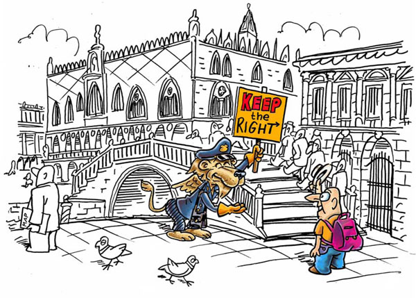 6- Tenere la destra quando si cammina per le calli e non sostare sui ponti