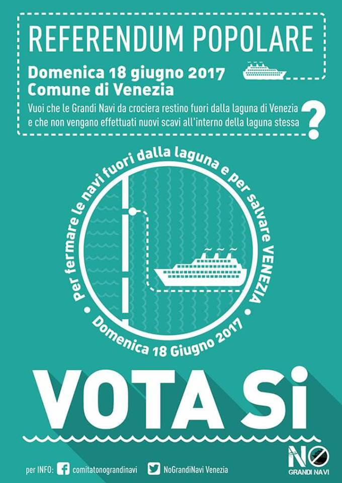 “Vuoi che le navi da crociera restino fuori dalla Laguna di Venezia e che non vengano effettuati nuovi scavi all’interno della Laguna stessa?”