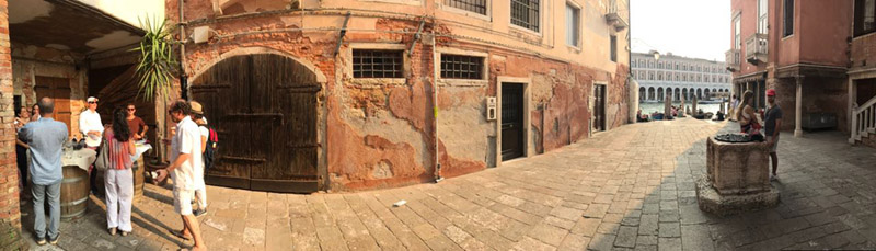 [l’ingresso è nel Sotoportego de le Acque, a due metri dal ponte dei Bareteri, a metà strada tra Rialto e San Marco]